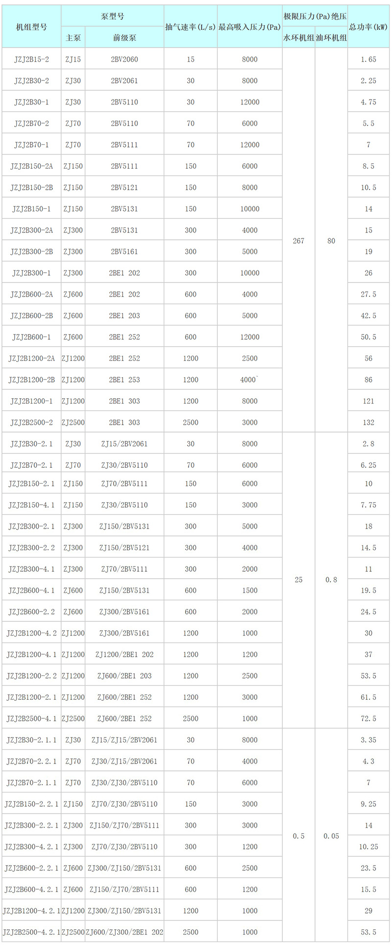 JZJ2B系列羅茨-水環(huán)真空機(jī)組技術(shù)規(guī)格